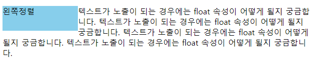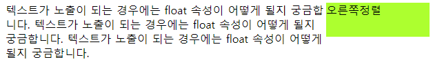 그리고 텍스트와 float 설정된 영역이 같이 노출이 되는 경우엔 아래와 같이 노출된다.